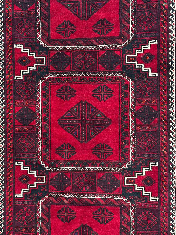 .فرش3.7 متری بلوچ بافت با اصالت گاو برجی از سرخس(Cow tower balouch handmde rug)