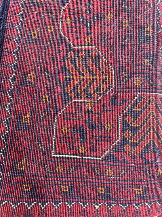 فرش دستبافت 4.3متری تمام کرک لاکی قرمز نقش بخارایی 40رج رنگ طبیعی ریزبافت و نفیس