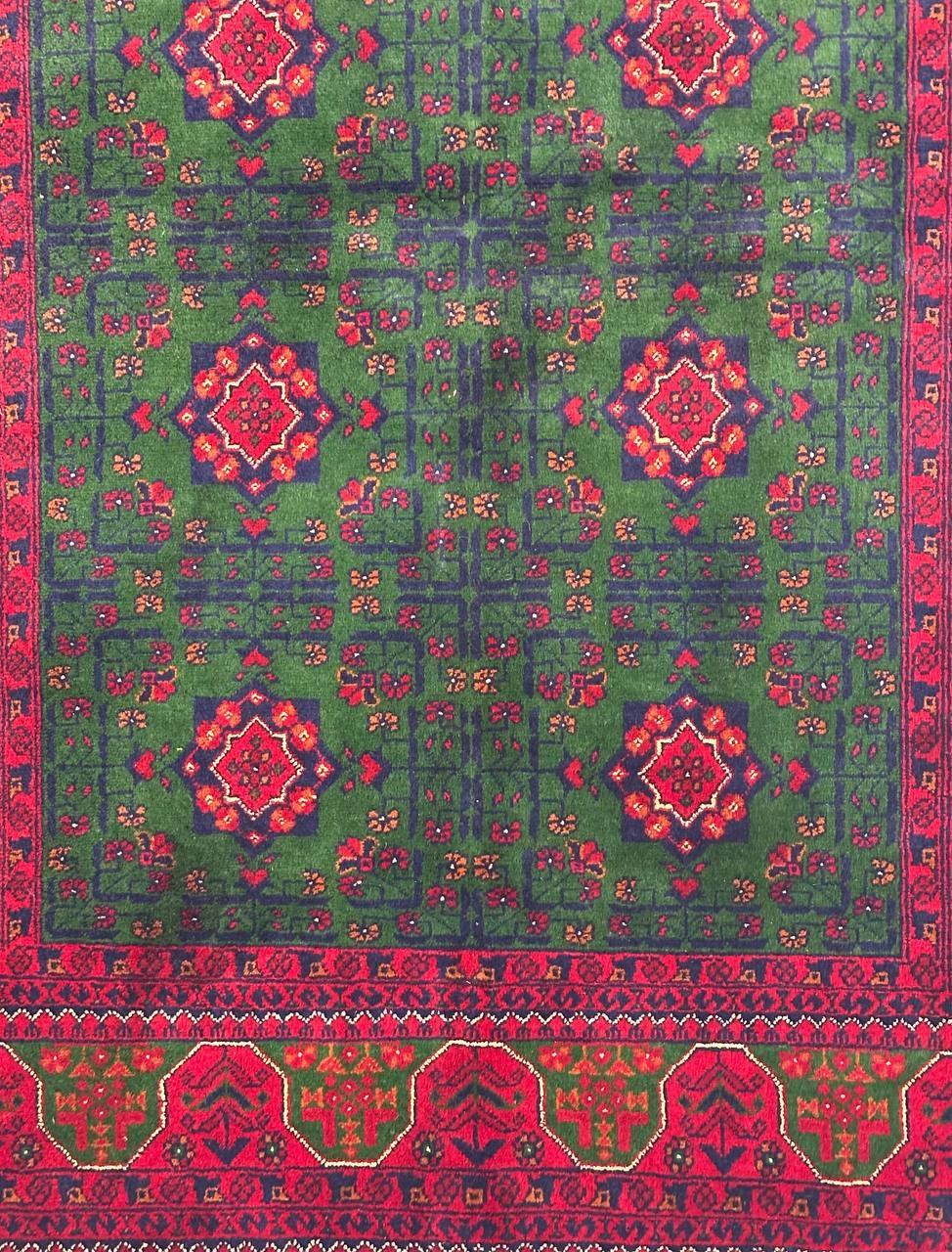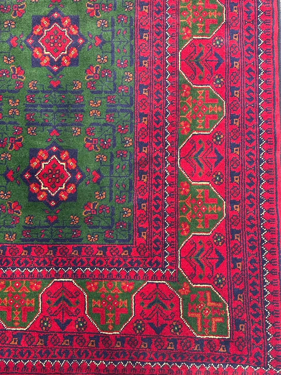 فرش دستباف 3متری تمام کرک سبز 35 رج رنگ گیاهی نقش بخارایی