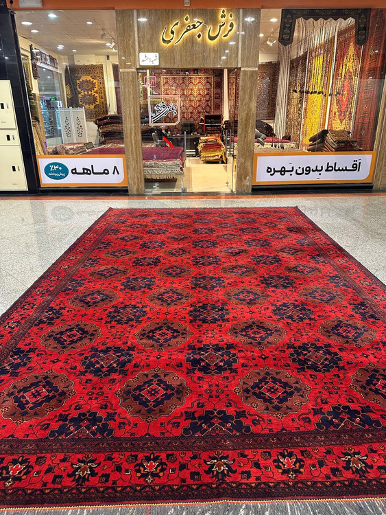 فرش دستبافت تمام کرک 15متری نقش قابی 35رج با رنگ گیاهی رناس بسیار ظریف بافت و لطیف با کرک مرینوس درجه یک بافت عشایر بلوچستان با 22% درصد تخفیف ویژه بلک فرایدی