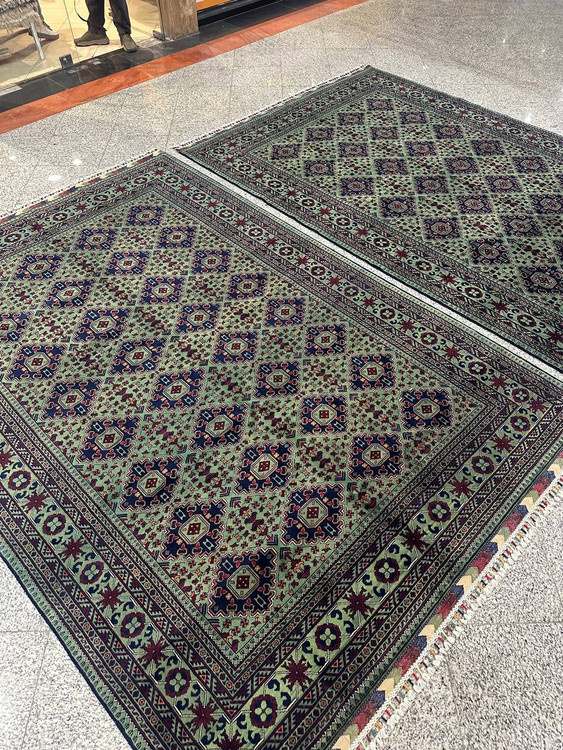 فرش های دستبافت تمام کرک از بهترین و پرفروش ترین فرشهای امسال با رنگ گیاهی سبز و 40رج ریز بافتی فرش