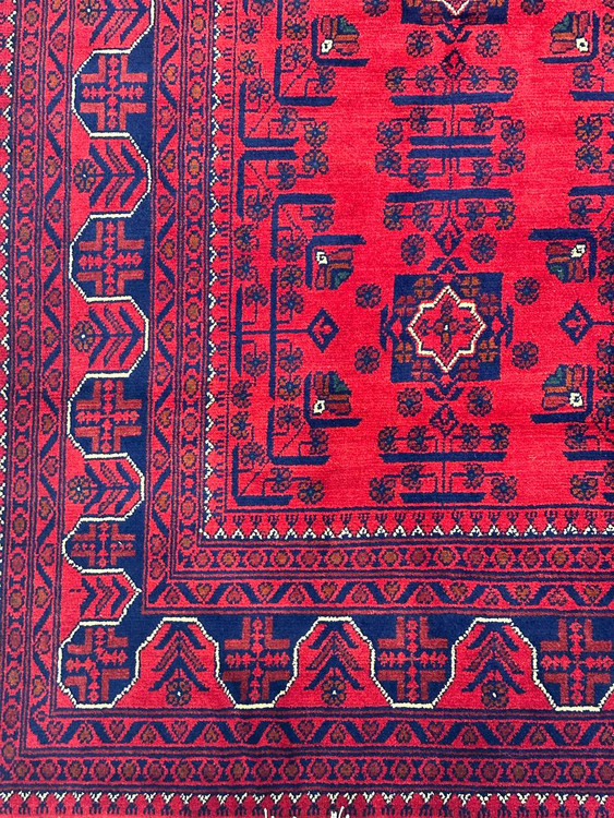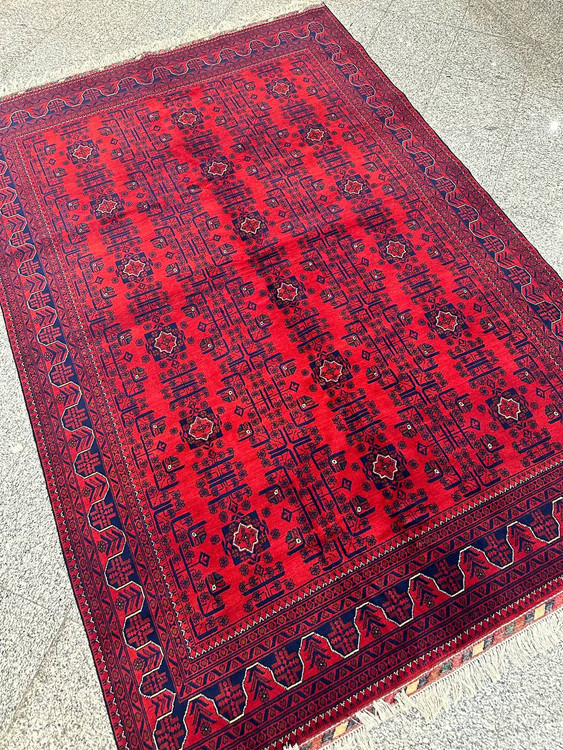 فرش تمام کرک لاکی دستبافت نقش بخارایی: هنر، زیبایی و کیفیت در یک اثر منحصر به فرد! این فرش با رنگهای لاکی و طراحیهای دلنشین، بهترین انتخاب برای هر فضای مدرن و سنتی است.
