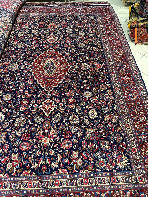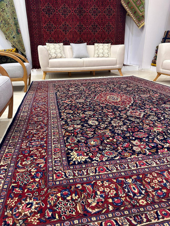 فرش دستبافت 9متری نقش افشان مشهد قدیم پشم مرغوب رنگ گیاهی کد0400024