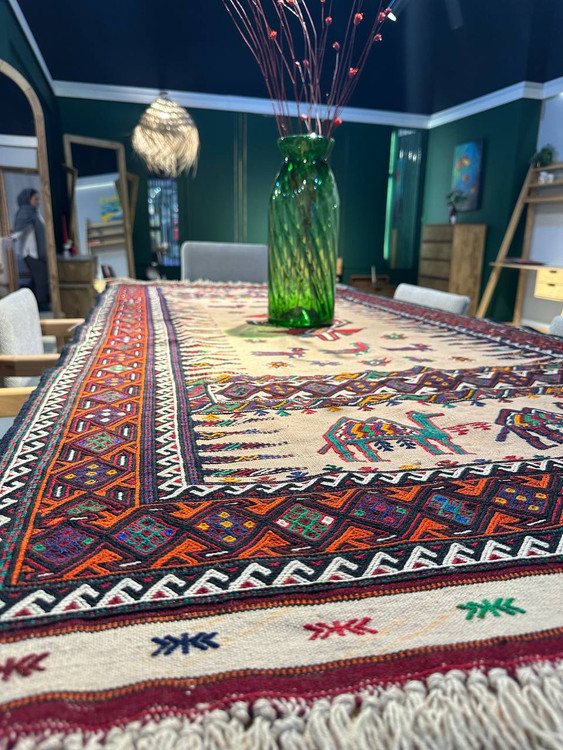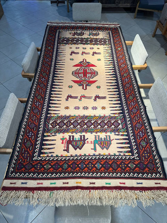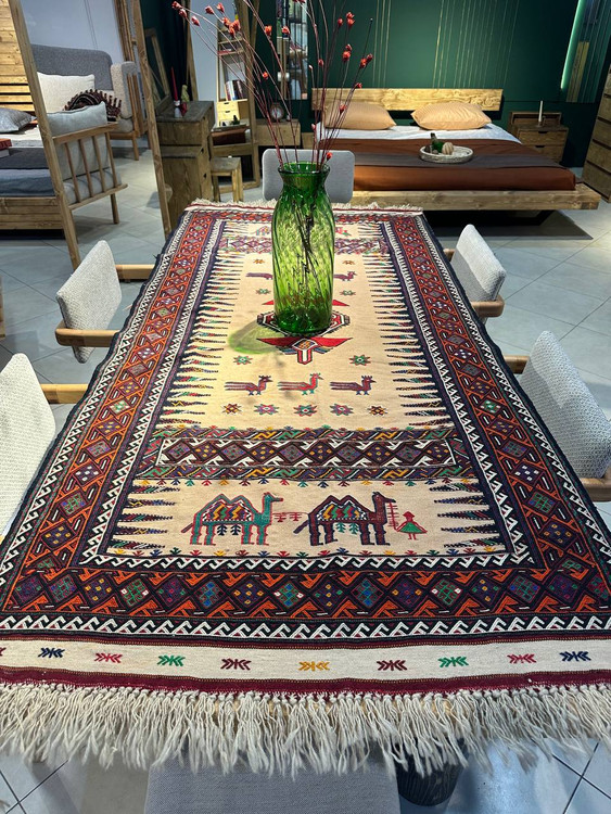 دکوراتیو: این گلیم، نه تنها یک زیرانداز است، بلکه میتواند به عنوان یک اثر هنری دکوراتیو نیز مورد استفاده قرار گیرد. آن را میتوانید روی میز، دیوار یا هر جای دیگری که مایلید، قرار دهید و از زیبایی آن لذت ببرید.
