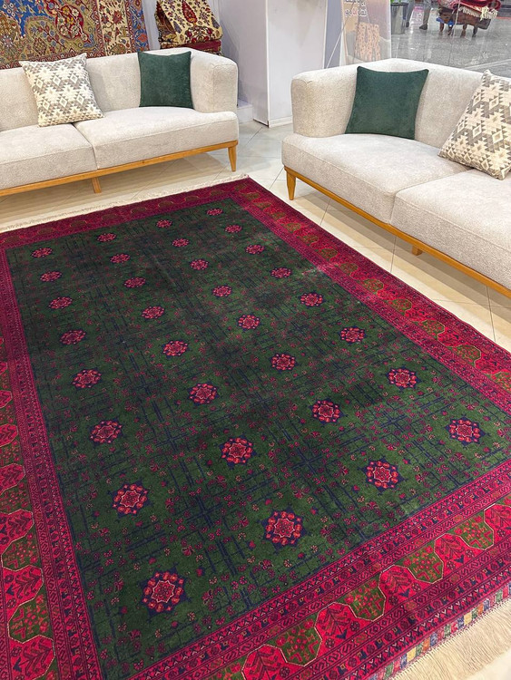 فرش دستبافت 6متری ، تمام کرک، رنگ گیاهی سبز بسیار زیبا - اصالت و زیبایی ماندگار