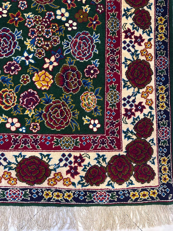 فرش دستبافت چله و گل ابریشم ظریف بافت با رنگ گیاهی