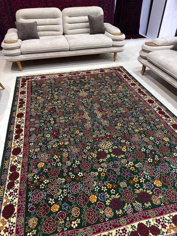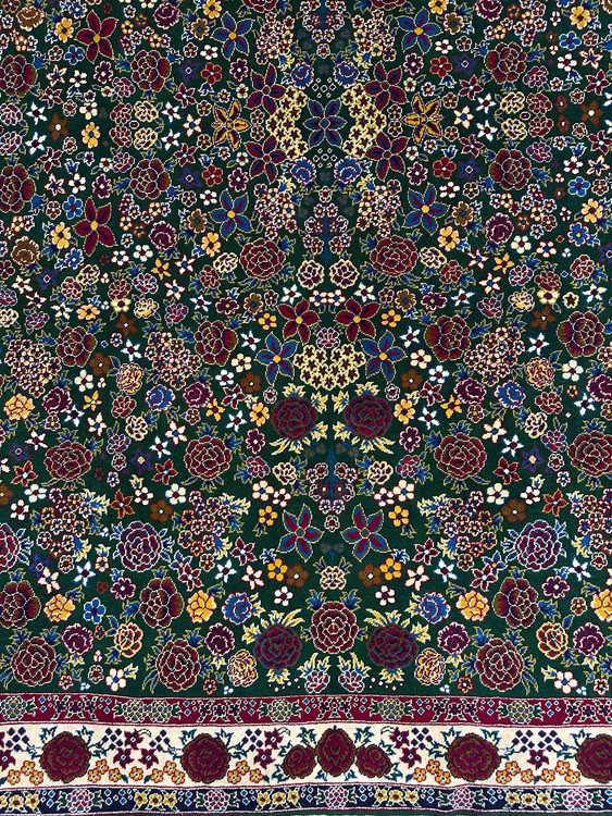 فرش دستبافت 6متری چله و گل ابریشم نقش هزارگل رنگ گیاهی کد0500285
