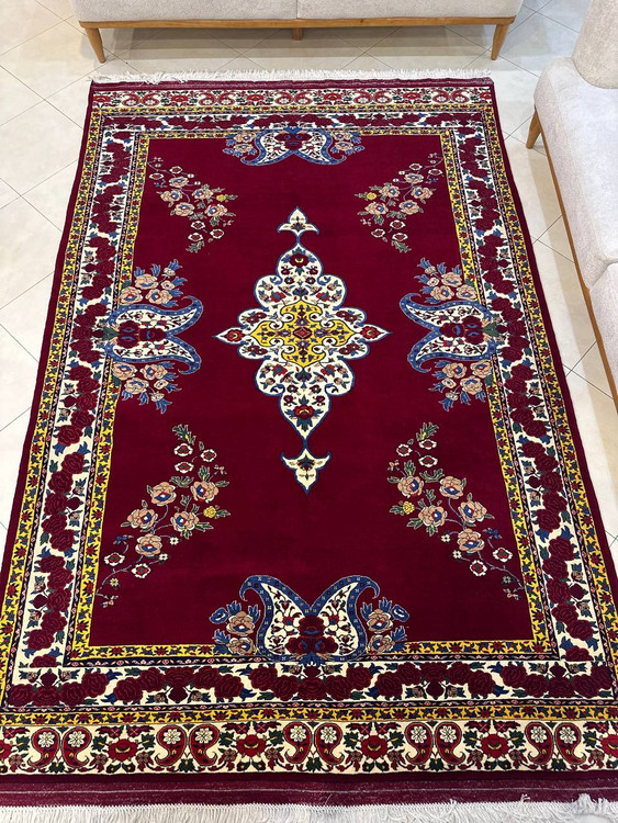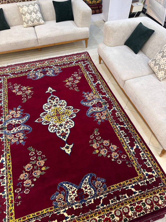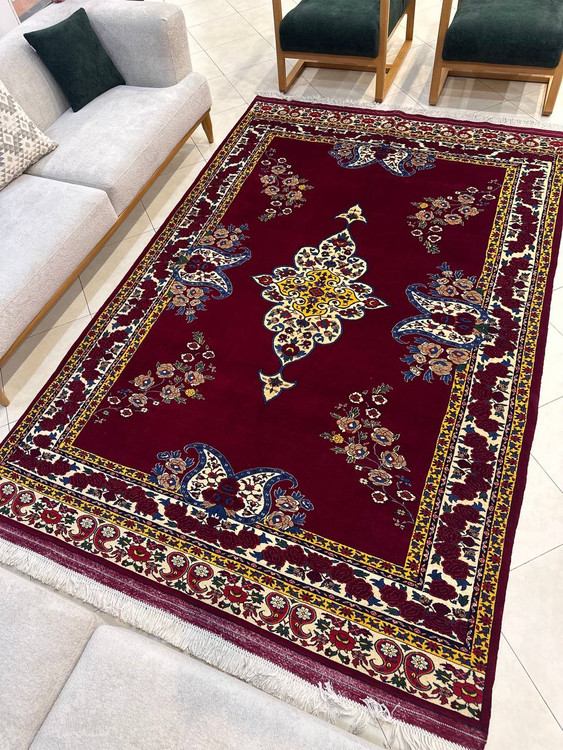 فرش دستبافت چله و گل ابریشم ظریف بافت با رنگ گیاهی