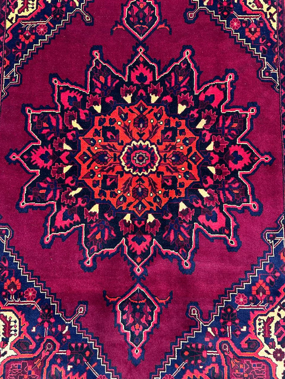 فرش دستبافت 6متری تمام پشم نقش خورشیدی بافت عشایر خراسان کارکرده کد0500337