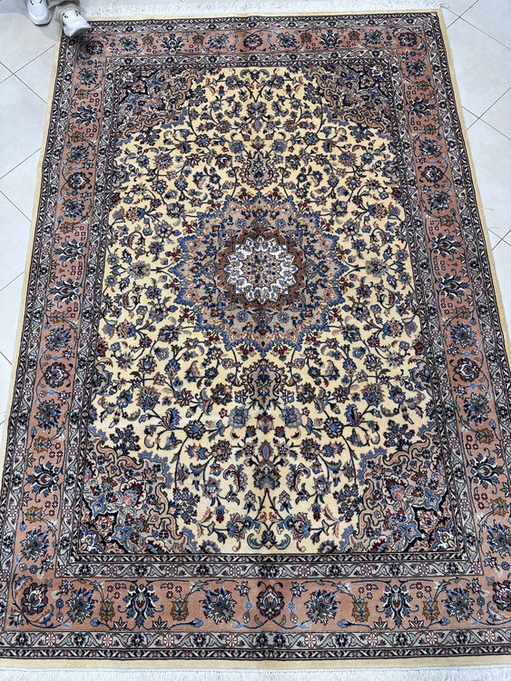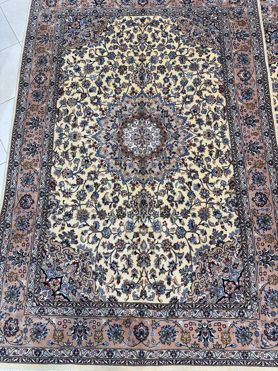 برای مشاهده حضوری این فرش زیبا میتوانید به نمایشگاه ما در مشهد، برج سلمان، طبقه دوم، پلاک ۱۴ و ۱۵ مراجعه کنید.