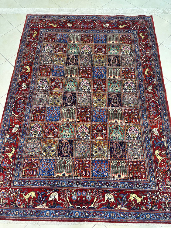 این فرشها بافتهشده توسط استادکاران ماهر بیرجندی بوده و از پشم و گل ابریشم طبیعی تهیه شدهاند. طرح خشتی کلاسیک و رنگبندی چشمنواز آن، جلوهای اصیل و مجلل به دکوراسیون منزل شما میبخشد.
