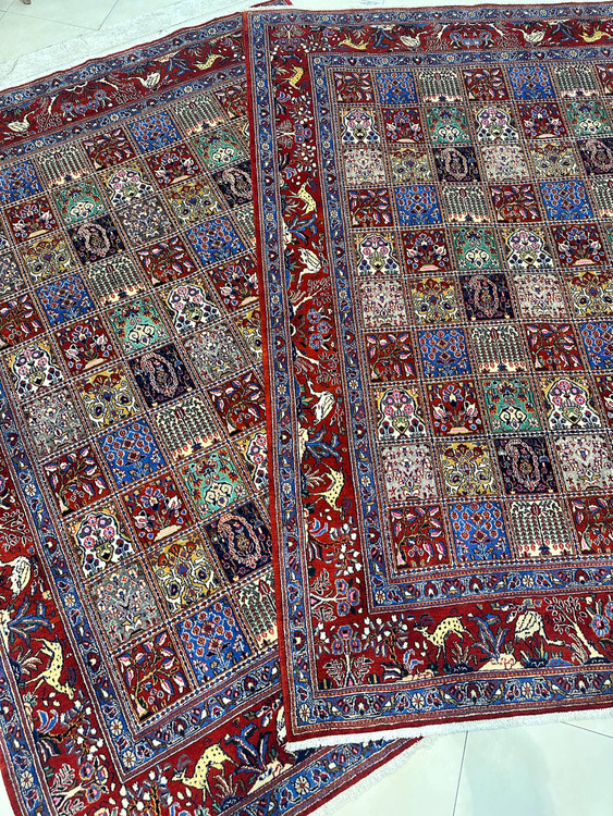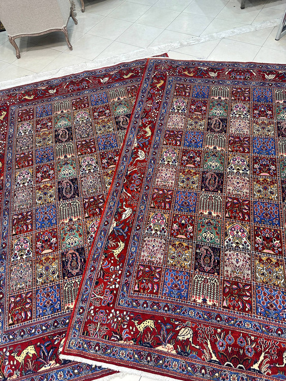 🧵 فرش دستبافت جفت ۶ متری گل ابریشم نقش خشتی بافت بیرجند