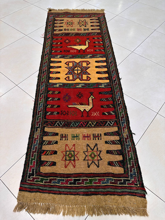 گلیم دستبافت 2متری تمام پشم نقش عشایری رنگ گیاهی کد 0800109