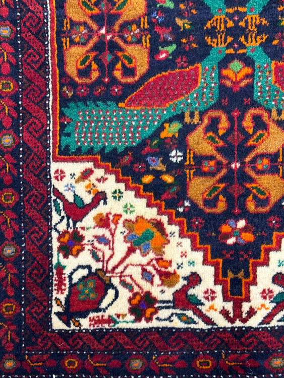 قالیچه دستباف 1متری تمام پشم طرح طاووسی بلوچ بافت رنگ طبیعی انتیک نو طرح طاووسی